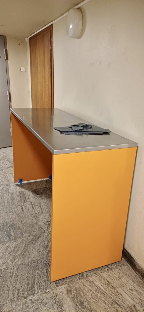 Våra rostfria bordsskivor är tillverkade enligt kundens önskemål med 28 mm nedbockade kanter och helsvetsade hörn. Resultatet är en stilren och sömlös finish som möter de krav som ställs i moderna restaurangmiljöer.