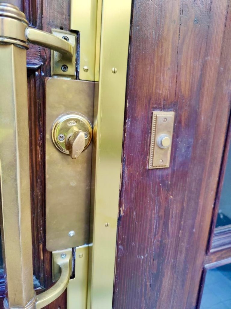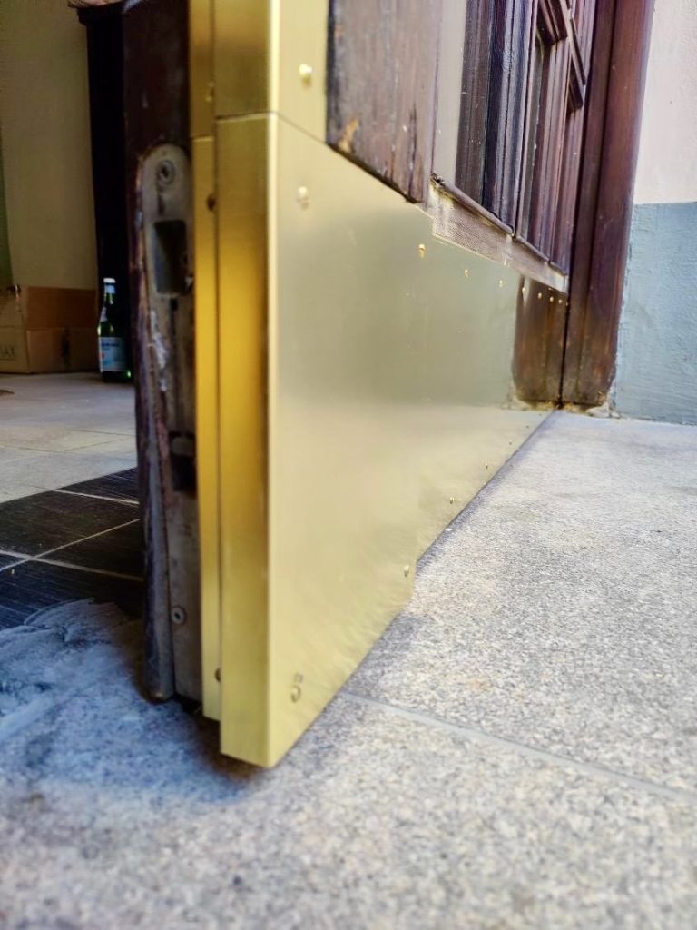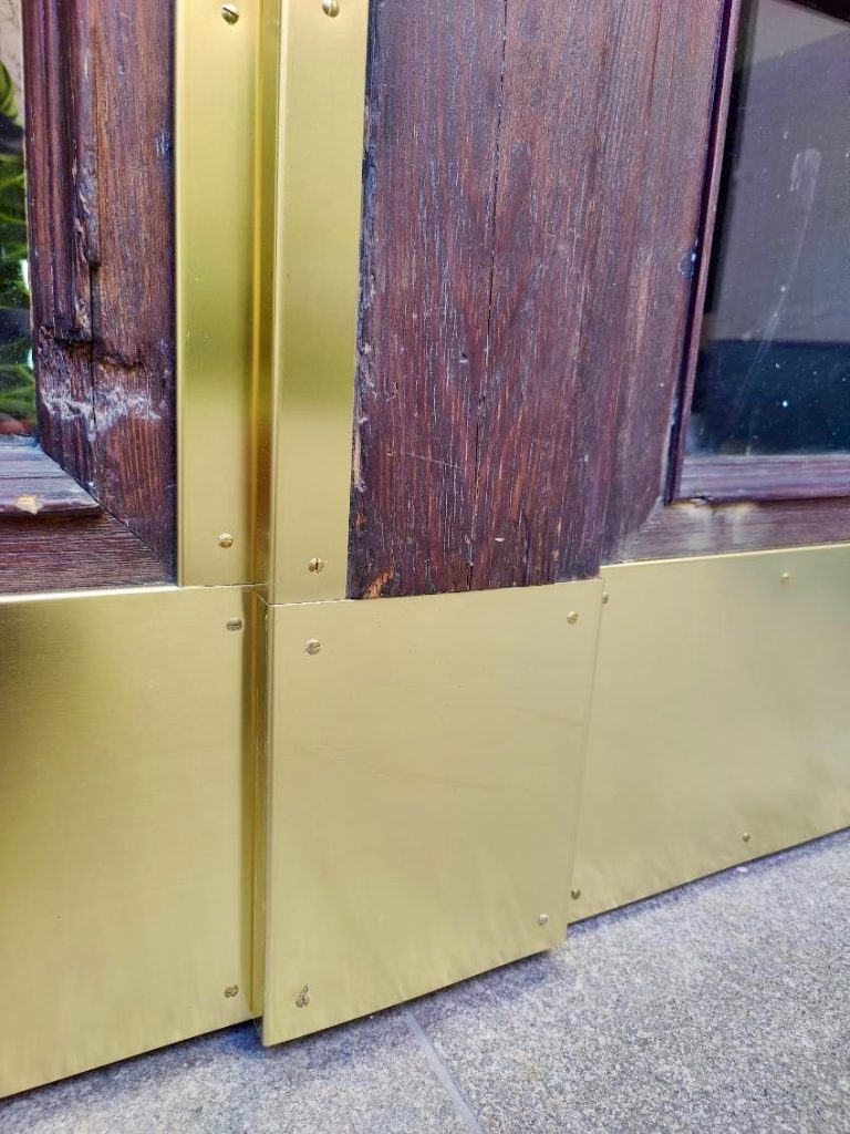 Entrédörrar i äldre fastigheter utsätts dagligen för slitage, särskilt i nederkant och runt handtag. Genom att montera en noggrant anpassad mässingsbeklädnad skapas ett effektivt skydd mot skador, samtidigt som materialvalet bidrar till en exklusiv och tidlös estetik.