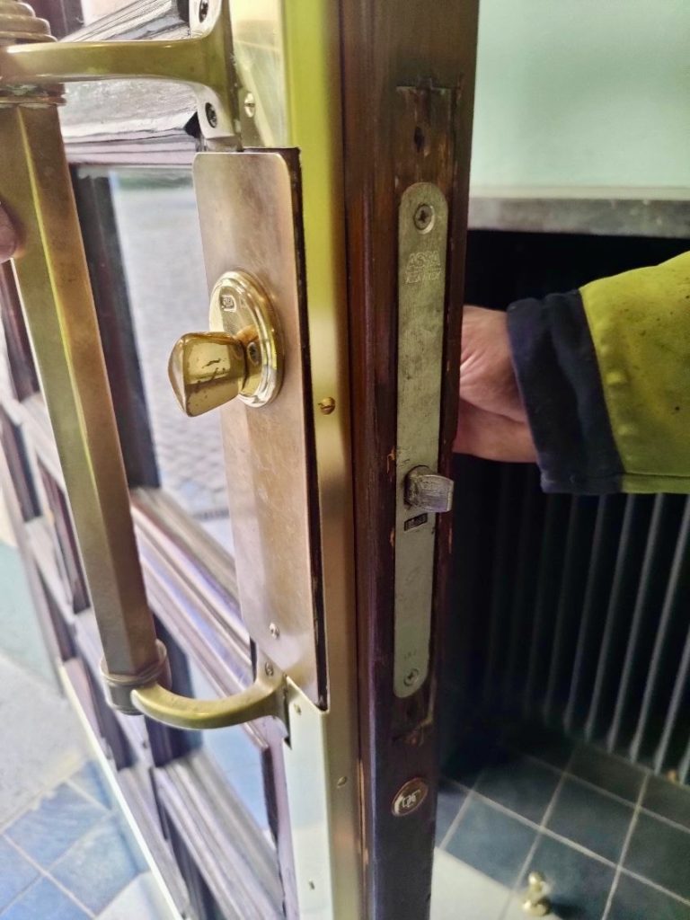 Vi har nyligen färdigställt ett projekt i centrala stan där ett klassiskt entréparti har uppgraderats med skräddarsydd mässingsbeklädnad. Syftet var att både förbättra slitstyrkan och samtidigt bevara byggnadens ursprungliga karaktär.